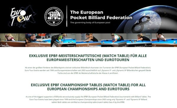 Dette bordet er det offisielle bordet som brukes under EM og Eurotour av European Pocket Billiard Federation. Bordet har justerbare ben, justerbar 3 delt skifer og en overflate som tåler kommersiell bruk. Passer like godt hjemme som i en biljardklubb eller ungdomsklubb. Kommer med Simonis konkurranse duk som standard, flere farger.